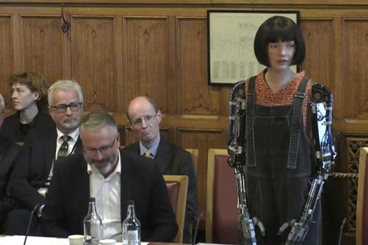 Invitat în Parlamentul Britanic, robotul Ai-Da a discutat pe tema „Un viitor creativ”, alături de dezvoltatorul său, Aidan Meller.