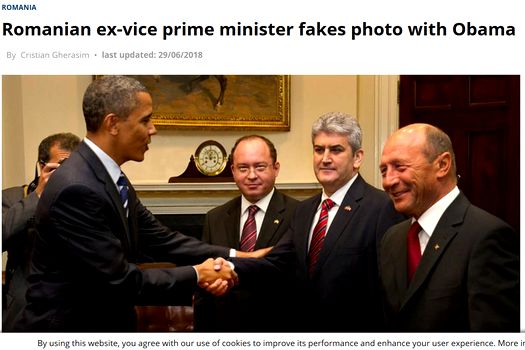 Fostul vicepremier al României a trucat o fotografie cu o strângere de mână cu Barack Obama, care nu a fost niciodată surprinsă de cameră, notează Euronews.
