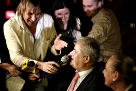 Alin Oprea a venit cu microfonul. Primul a cântat Năstase, şezând pe scaun: "E ziua ta, iubito/ Şi-n dar de ziua ta/ Ţi-aş da şi ani din viaţa mea/ Dacă aş putea". Aplauze, frenezie, sala era în picioare. A urmat Geoană. Spre deosebire de Adrian Năstase, el s-a ridicat de la masă şi a încântat audienţa cu vocea sa, iar la finalul melodiei a avut şi o contribuţie personală, adăugând "şi pot, şi pot, şi pot". Din nou aplauze, frenezie, sala în picioare.