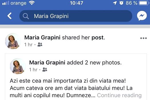 ”Azi este cea mai importantă azi din viaţa mea! Acum câteva ore am dat viaţă băiatului meu! La mulţi ani copilul meu! Dumnezeu ne-a ajutat să creşti mare, sănătos şi să ai parte de familia ta:Luca, Anna şi Anca! Te iubim şi pentru noi eşti sensul ultimilor 39 de ani! La mulţi ani, aşa cum îi doreşti! Sănătate şi fericire!”, a scris pe Facebook Maria Grapini.