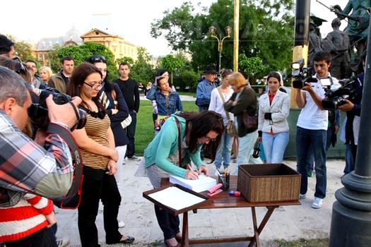 Un eveniment de susţinere a actorului Şerban Ionescu a fost organizat luni, în faţa Teatrului Naţional Bucureşti, fiind iniţiat de un grup de iubitori ai teatrului românesc.