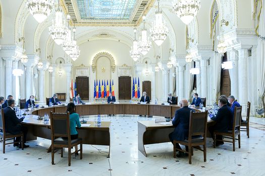 Preşedintele a schimbat decorul, iar pe membrii Guvernului i-a primit într-o sală în care mesele sunt dispuse circular, ca la şedinţele ONU.