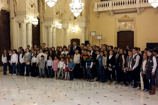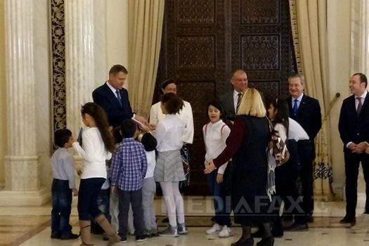 Evenimentul de la Palatul Cotroceni a marcat 25 de ani de la semnarea Convenţiei ONU cu privire la drepturile copilului. La ceremonie au fost invitaţi 120 de copii din mai multe şcoli, precum şi copii instituţionalizaţi.