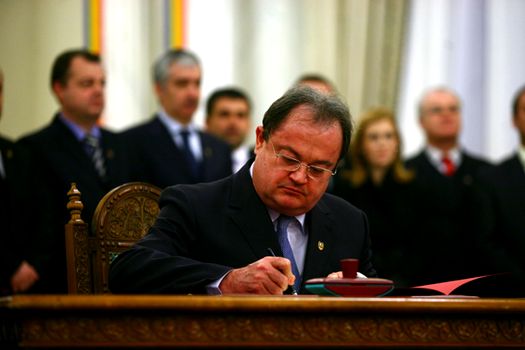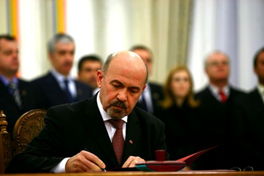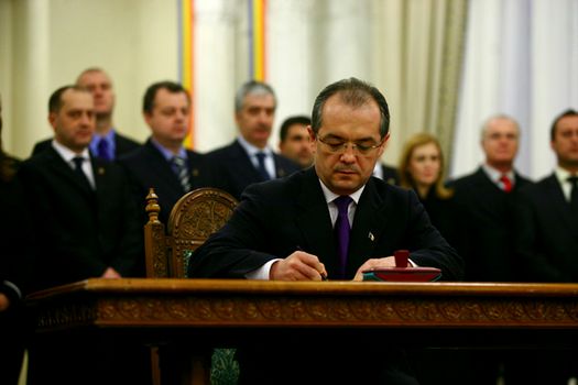 Ceremonia depunerii jurământului în faţa preşedintelui Traian Băsescu a avut loc în Sala Unirii a Palatului Cotroceni.