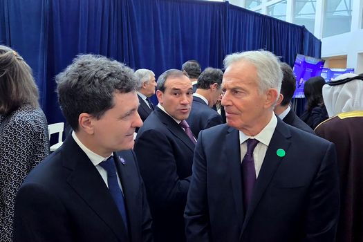 Președintele României, Nicușor Dan, stă lângă Tony Blair, fost premier al Marii Britanii.
