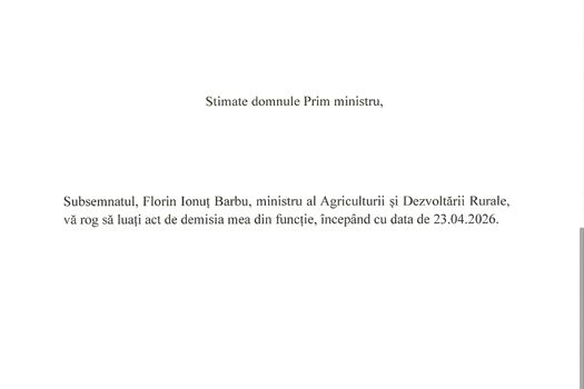 Acesta a precizat că va continua să asigure funcționarea Ministerului Agriculturii și Dezvoltării Rurale „până când demisia devine efectivă”.