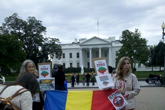 UPDATE 18:40 Protest în faţa Casei Albe, unde este Ponta, faţă de Roşia Montană şi gazele de şist