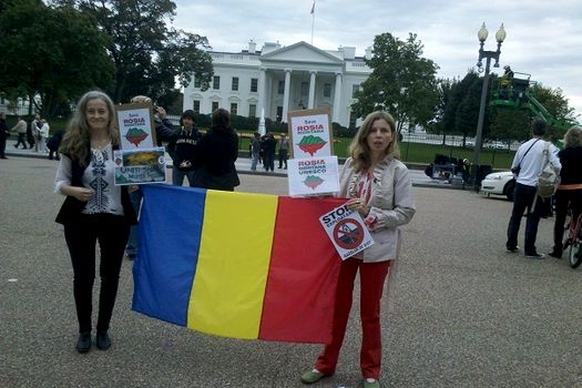 Protestatarii au spus că sunt originari din judeţul Alba şi trăiesc în prezent în oraşul american Pittsburgh, dar au dorit să vină special la Casa Albă, ştiind că premierul Ponta se va afla acolo, pentru a protesta faţă de proiectul Roşia Montană şi explorarea gazelor de şist.