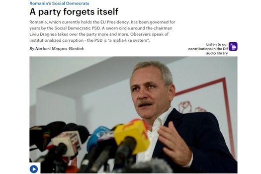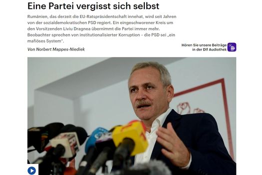 Documentarul, difuzat pe site-ul deutschlandfunk.de, relatează că social-democraţii guvernează România de mulţi ani, ţară care în prezent deţine Preşedinţia Consiliului UE, precizând că liderul partidului Liviu Dragnea are „un cerc de credincioşi” care domină din ce în ce mai mult formaţiunea. Jurnaliştii germani mai aduc în discuţie corupţia instituţionalizată, precizând că „PSD este un sistem asemănător mafiei”.