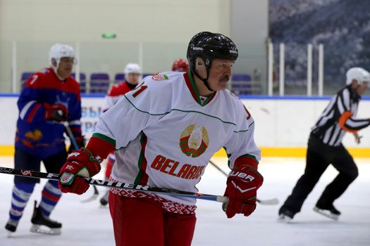 Preşedintele Belarusului, Alexandr Lukaşenko a disputat un meci demonstrativ de hochei pe gheaţă în compania unei echipe din regiunea Minsk. Liderul în vârstă de 67 de ani şi-a condus echipa spre victorie, stabilind scorul final de 5 la 2, în uralele mulţimii.