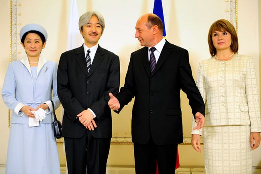 Preşedintele Traian Băsescu şi soţia sa, Maria Băsescu, i-au primit la Palatul Cotroceni pe Prinţul Akishino şi Prinţesa Kiko. Primirea a avut loc în holul de onoare al Palatului Cotroceni şi a fost urmată de discuţii între cele două delegaţii.