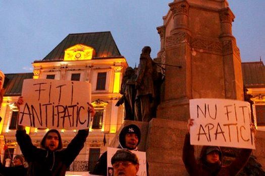 Peste 50 de persoane,în centrul Ploieştiului la un miting spontan contra lui Băsescu şi a Guvernului