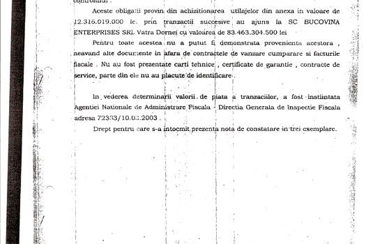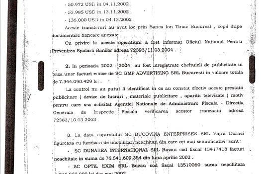 El a precizat că în nota de constatare, care a fost semnată de doi inspectori principali, se menţionează că suma a fost înregistrată drept cheltuieli de publicitate, dar că la control nu s-a putut identifica în ce au constat efectiv prestaţiile publicitare, motiv pentru i s-a solicitat ANAF verificarea acestor tranzacţii.