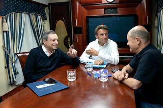 În cursul nopţii, premierul Mario Draghi, preşedintele francez Emmanuel Macron şi cancelarul german Olaf Scholz au apărut în câteva fotografii care îi arată împreună în vagonul unui tren. Ar fi convoiul care îi duce la Kiev, unde cei trei lideri ai UE plănuiesc să se întâlnească astăzi cu preşedintele ucrainean Volodimir Zelenski. (Aici articolul lui Marco Galluzzo despre misiunea celor trei lideri de la Kiev)