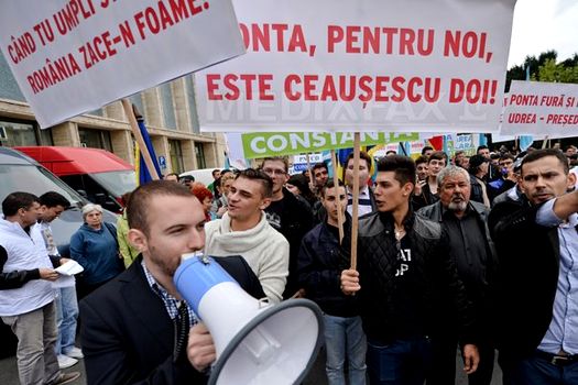 Udrea, avându-i alături, în prima linie, pe liderul ţărănist Aurelian Pavelescu, pe fosta jucătoare de tenis Ruxandra Dragomir şi pe fostul consilier prezidenţial Adrian Rădulescu, împreună cu manifestanţii au plecat spre Piaţa Victoriei ţinând un banner pe care era scris: „Ponta-PSD, şomaj şi sărăcie pentru întreaga Românie”.