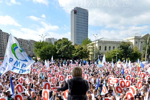 De la marşul PMP, la care au fost prezenţi peste cinci mii de persoane, au lipsit fostul preşedinte al partidului Eugen Tomac, fostul candidat la Preşedinţie Cristian Diaconescu, dar şi europarlamentarul PMP Cristian Preda.