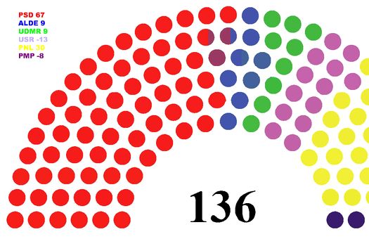 La distribuirea mandatelor pentru Senat, PSD a primit 67 de mandate, PNL- 30, USR-13, ALDE-9, UDMR-9, PMP-8.