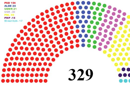La distribuirea mandatelor pentru Camera Deputaţilor, PSD a primit 154 de mandate, PNL-69, USR- 30, UDMR-21, ALDE- 20, PMP-18.