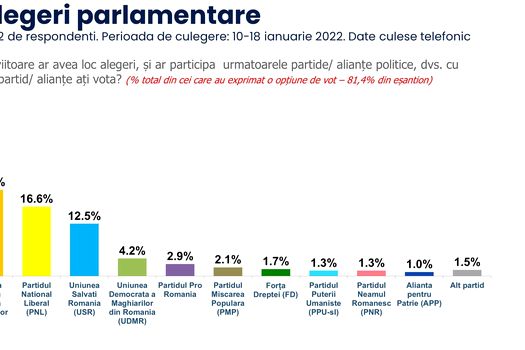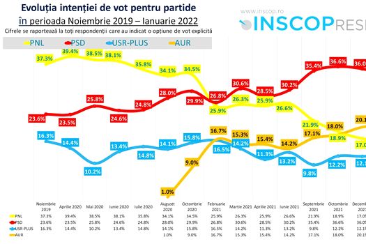 Conform ultimului sondaj INSCOP, realizat în ianuarie 2022: