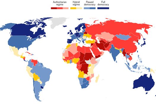 Din 2006, Economist Intelligence Unit a evaluat 167 de ţări şi teritorii pe o scară de la zero la zece, pe baza a cinci criterii: procesul electoral şi pluralismul, funcţionarea guvernului, participarea politică, cultura politică şi libertăţile civile.