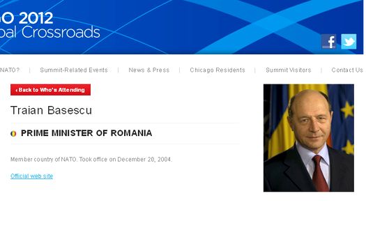 Site-ul chicagonato.org menţionează că România este stat membru al NATO şi că Băsescu a preluat funcţia la 20 decembrie 2004.