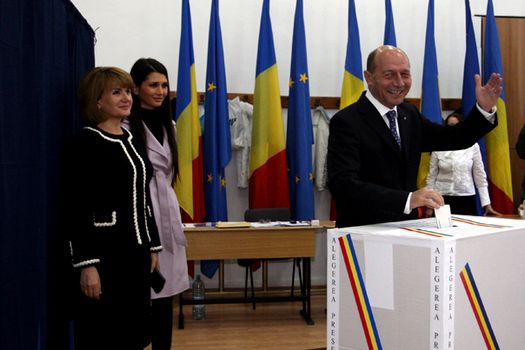 Băsescu a venit la secţia de votare împreună cu soţia sa şi cu cele două fiice.
