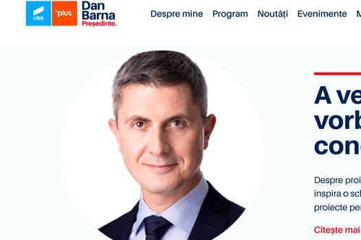 Site-ul lui Dan Barna prezintă informaţii despre candidatul Alianţei USR-PLUS la prezidenţiale, precum şi programul de candidat pe care acesta l-a lansat vineri, la Sibiu, oraşul său natal.