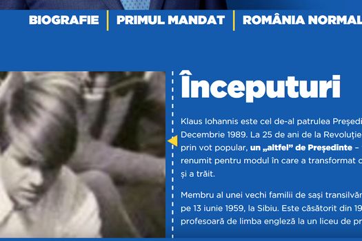 Site-ul preşedintelui Klaus Iohannis conţine informaţii biografice, date despre primul mandat la Cotroceni, cât şi mai multe poze cu acesta, inclusiv din tinereţe. Şeful statului are fotografii alături de Donald Trump, Emmanuel Macron, Angela Merkel, dar şi de la vizita Papei Francisc în România.