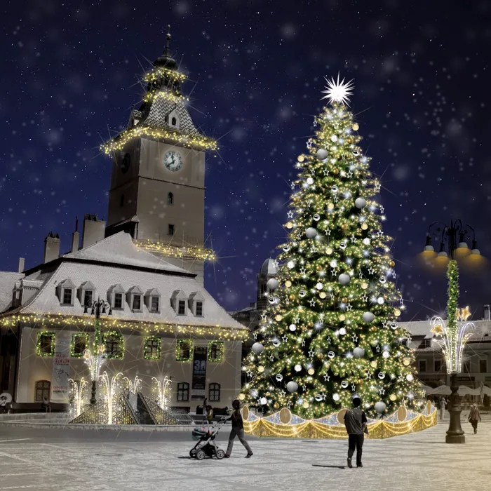 A început montarea iluminatului festiv de Crăciun la Brașov: Când se vor aprinde luminițele