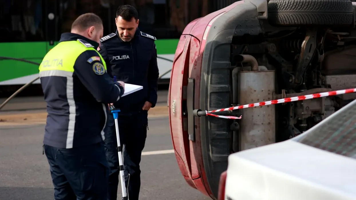 Accident grav lângă Spitalul Colentina. Șase mașini au fost implicate, una s-a răsturnat