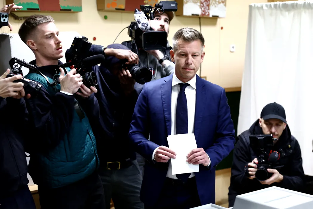 BUDAPEST, HUNGARY - APRIL 12: Tisza Party candidate, Peter Magyar votes for the general election at a polling station in Budapest, Hungary on April 12, 2026. Jakub Porzycki / Anadolu/ABACAPRESS.COM