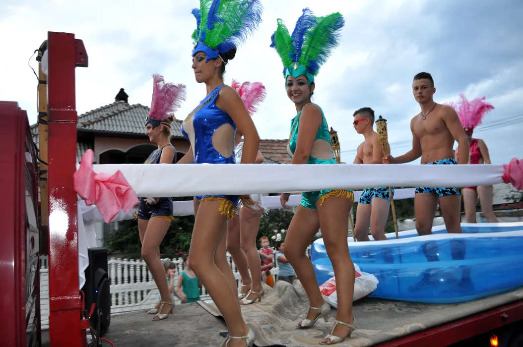Bistriţa: Care alegorice cu tineri în slip şi cadâne în costume de baie, la sărbătoarea unei comune – FOTO