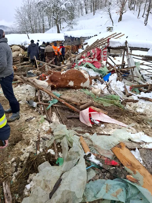 Buzău: Saivan, prăbușit peste animale din cauza nămeților. Mai multe animale au murit