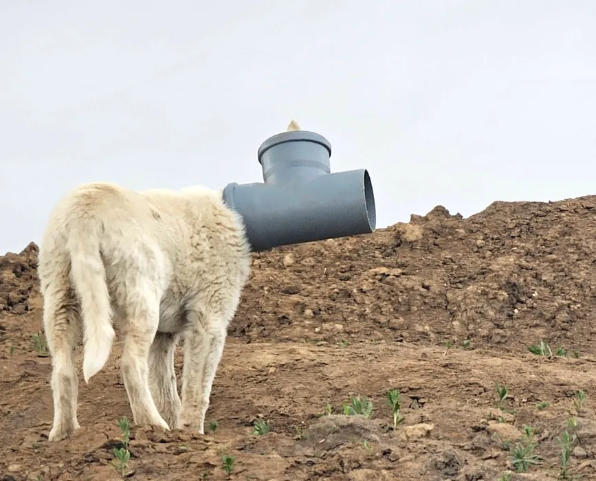 Câine cu capul blocat într-o țeavă, de zile întregi în Ilfov. Apel urgent al Protecției Animalelor