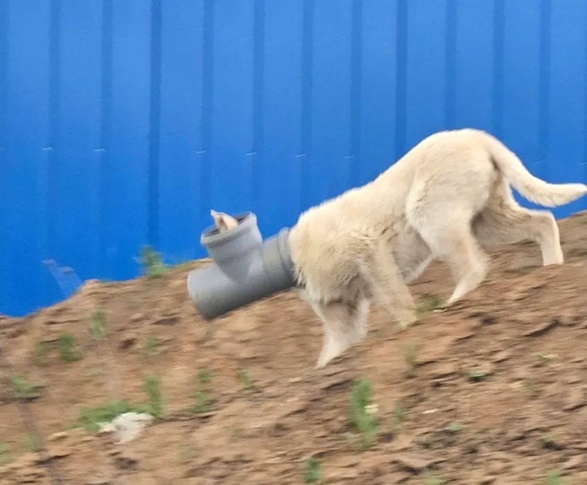 Câine cu capul blocat într-o țeavă, de zile întregi în Ilfov. Apel urgent al Protecției Animalelor