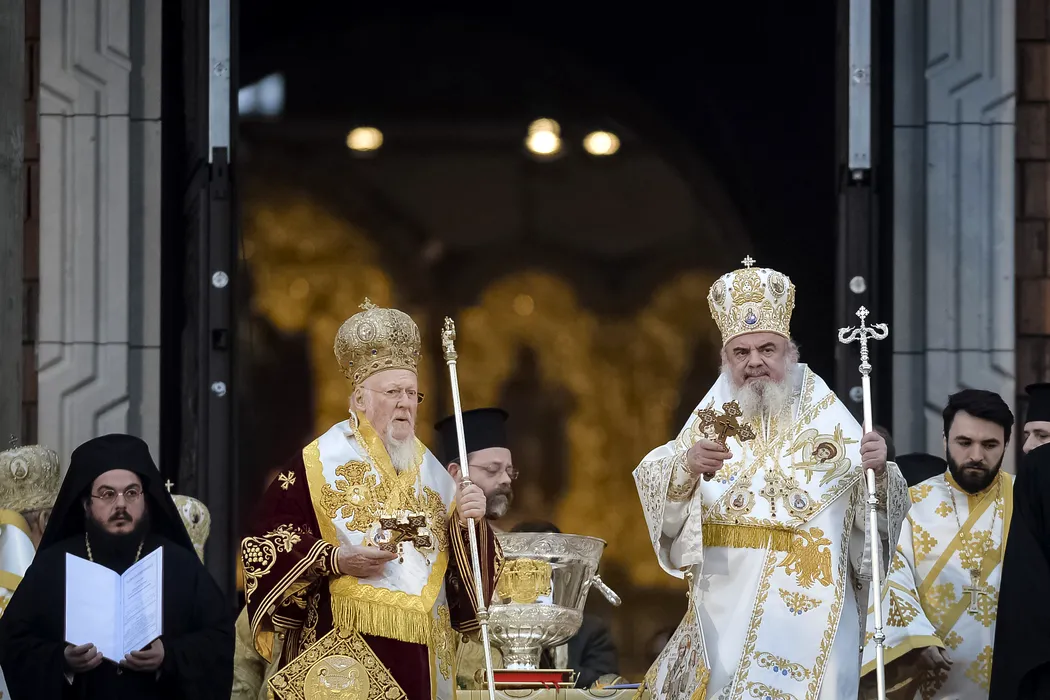 Patriarhul ecumenic al Constantinopolului, Bartolomeu (centru stanga) si patriarhul Romaniei, Daniel (centru dreapta), conduc ceremonia religioasa de sfintire a altarului Catedralei Mantuirii Neamului, duminica 25 noiembrie 2018, in Bucuresti. ANDREEA ALEXANDRU / MEDIAFAX FOTO