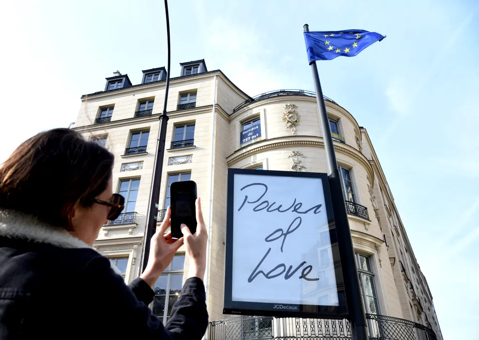 Celine Dion's song titles are displayed in the streets of Paris, "Pour que tu m'aimes encore, Encore un soir, My Heart Will Go On, S'il suffisait d'aimer, Power of Love" France on March 24, 2026. Photo by Alain Apaydin/ABACAPRESS.COM Date de PDV ; 24/03/2026