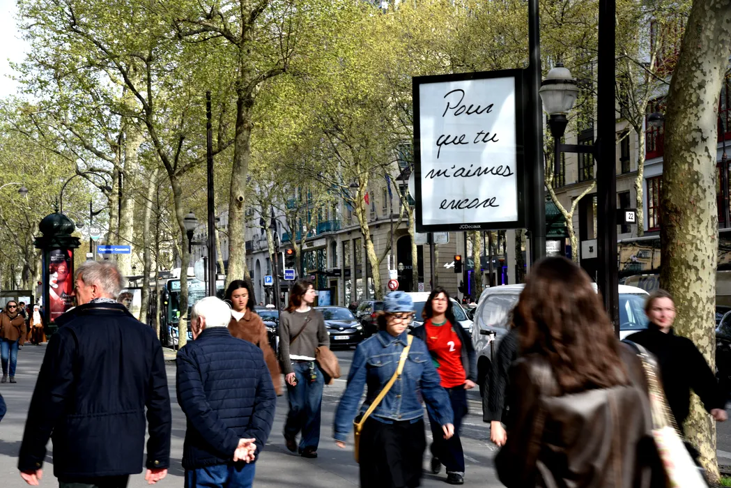 Celine Dion's song titles are displayed in the streets of Paris, "Pour que tu m'aimes encore, Encore un soir, My Heart Will Go On, S'il suffisait d'aimer, Power of Love" France on March 24, 2026. Photo by Alain Apaydin/ABACAPRESS.COM Date de PDV ; 24/03/2026