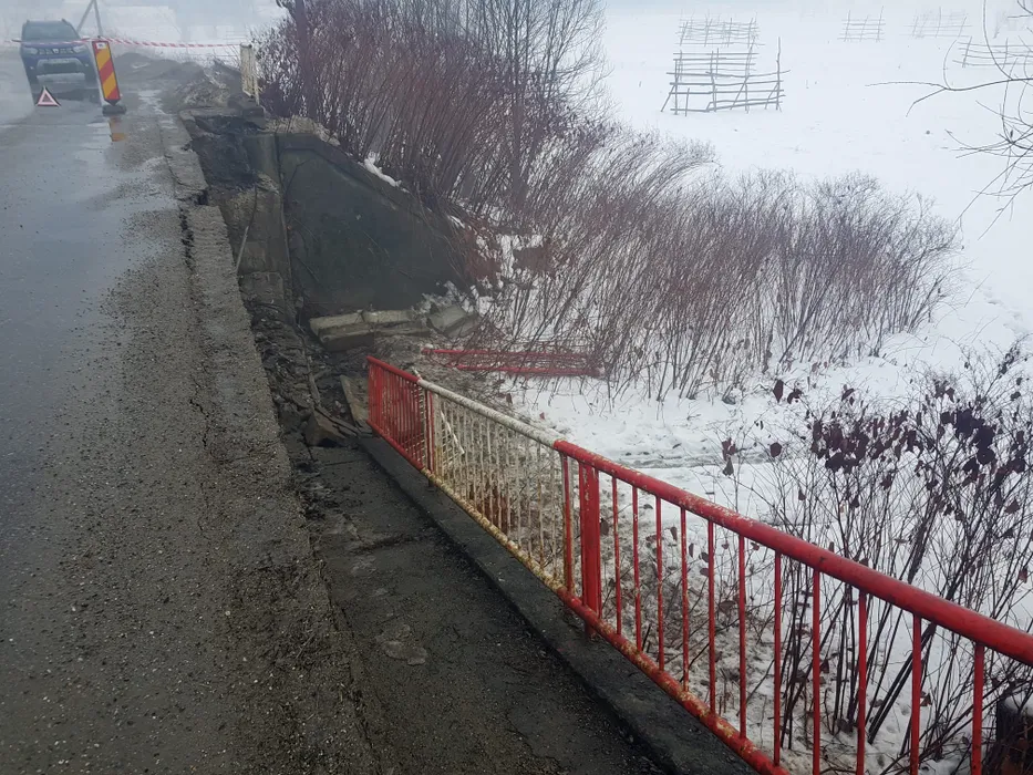 Circulație închisă în Maramureș, după ce a căzut grinda marginală a podului peste râul Vișeu