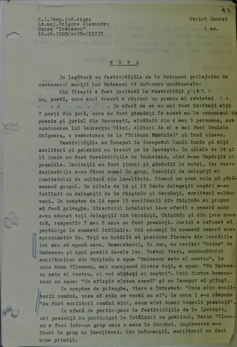 CNSAS: Cum a dat Eminescu de lucru Securității în iunie 1989