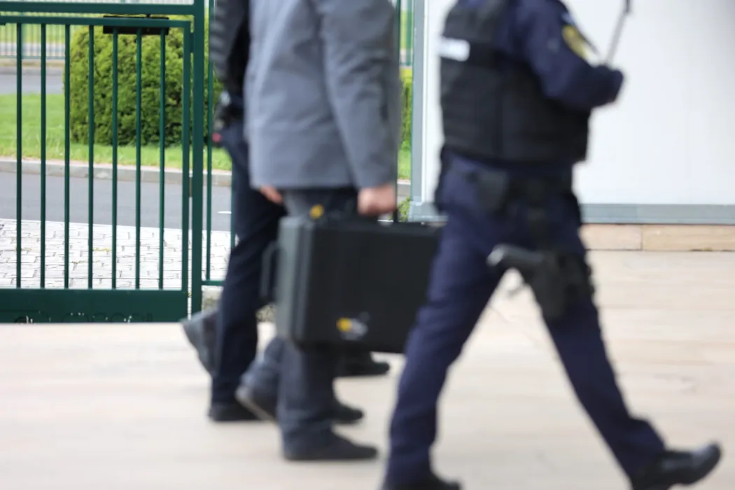 Coiful de aur de la Cotofenesti si o bratara dacica multispirala sunt descarcate sub escorta speciala pe Aeroportul International „Henri Coanda”, dupa ce au fost repatriate din Olanda, marti, 21 aprilie 2026. Piesele de tezaur au fost transportate in conditii de maxima siguranta pentru a fi redate patrimoniului national. MIHAI POP / GMN / MEDIAFAX FOTO