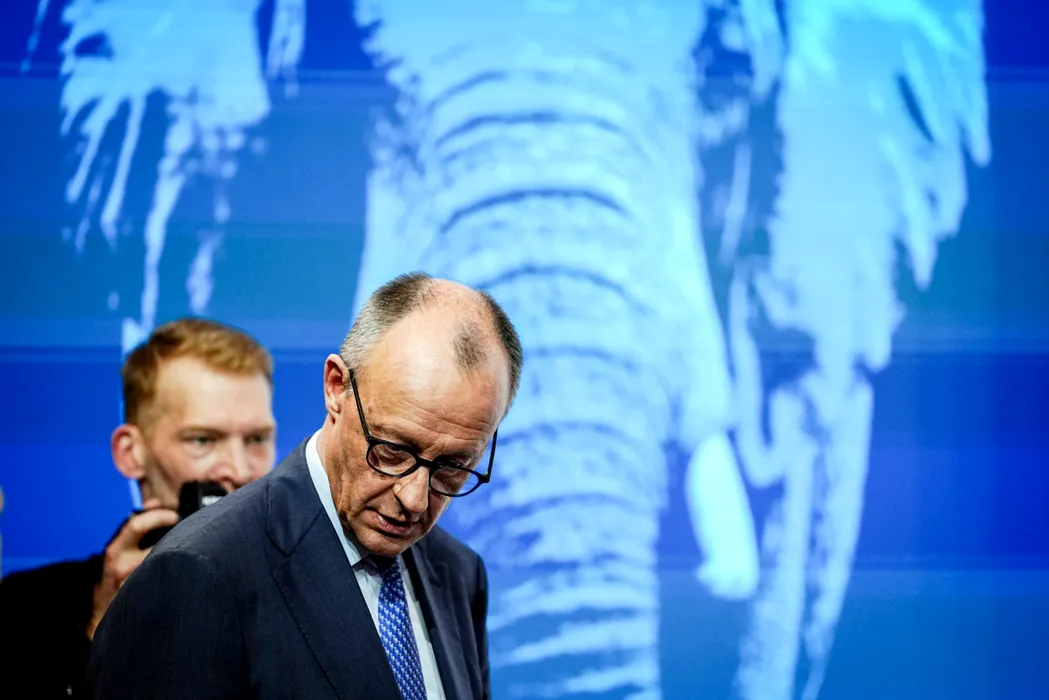 13 February 2026, Bavaria, Munich: German Chancellor Friedrich Merz attends the opening of the 62nd Munich Security Conference in front of a projection of an elephant. The event will host over 60 heads of state and government-the highest number ever at the world's leading security policy meeting. Photo: Kay Nietfeld/dpa