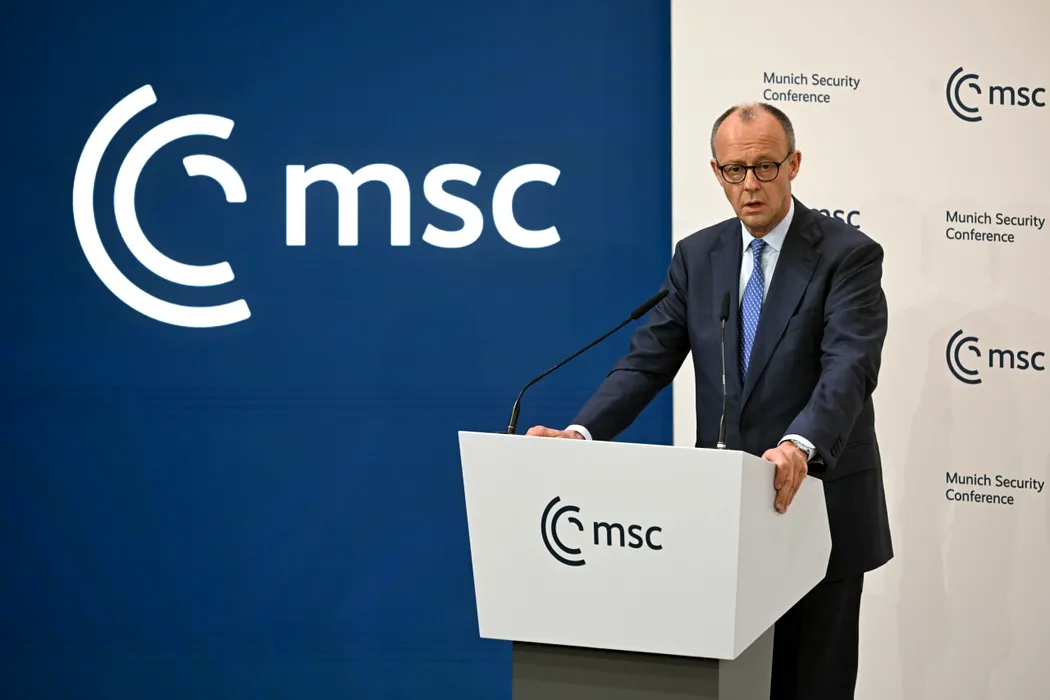 13 February 2026, Bavaria, Munich: Chancellor Friedrich Merz speaks at the opening of the Munich Security Conference, which will host over 60 heads of state and government-the highest number ever at the world's leading security policy meeting. Photo: Marijan Murat/dpa