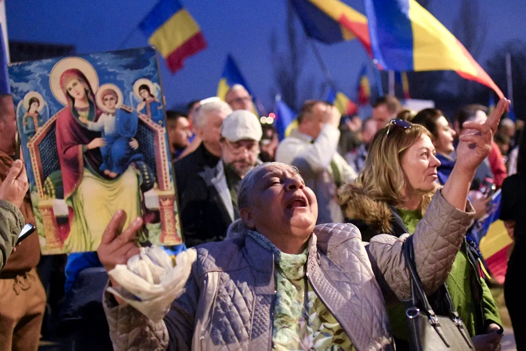Protest al sustinatorilor candidatului independent la alegerile prezidentiale 2025, Calin Georgescu, desfasurat in fata sediului CCR din Bucuresti, marti, 11 martie 2025. ALEXANDRU DOBRE / MEDIAFAX FOTO