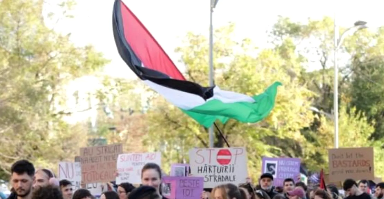 GALERIE FOTO: Controversă după manifestația împotriva violenței asupra femeilor. Participanți nemulțumiți după ce steagurile Palestinei au fost aduse la manifestație: „Dacă știam acest lucru, nu mai veneam” / Dezbateri intense și pe rețelele de socializare