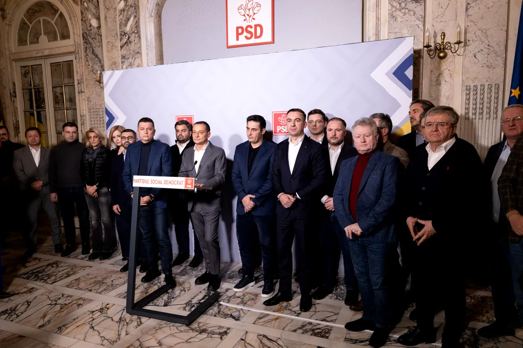 Candidatul PSD la Primaria Capitalei, Daniel Baluta (C), sustine un discurs dupa aflarea rezultatelor exit-poll pentru alegerile locale partiale 2025, la sediul partidului din Bucuresti, duminica, 7 noiembrie 2025. ALEXANDRA PANDREA / GMN / MEDIAFAX FOTO