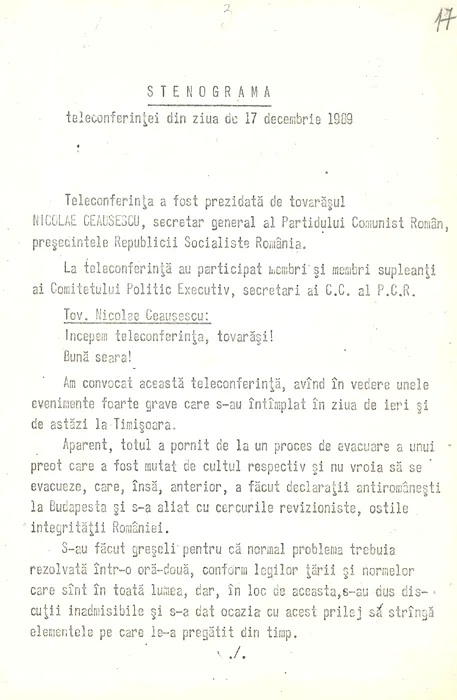 Documente inedite despre Revoluția din 1989, publicate de Arhivele Naționale: ordinele lui Ceaușescu din 17 decembrie