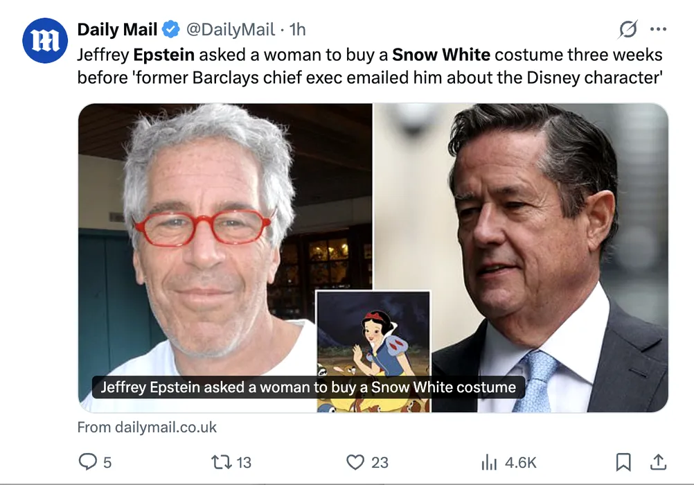 Dosarele Epstein: Jeffrey Epstein, Albă ca Zăpada și un bancher de la Barclays