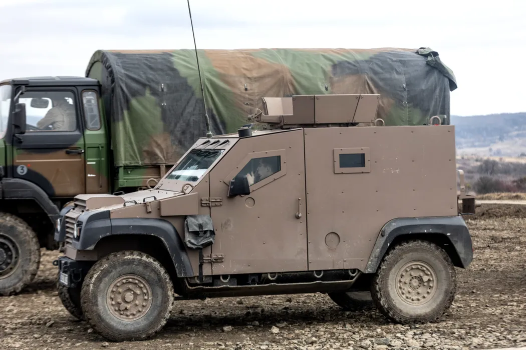 Blindat 4x4 al armatei franceze, la exercitiul multinational DYNAMIC FRONT 26, desfasurat la Poligonul Cincu, luni, 9 februarie 2026. MIHAI POP / GMN / MEDIAFAX FOTO