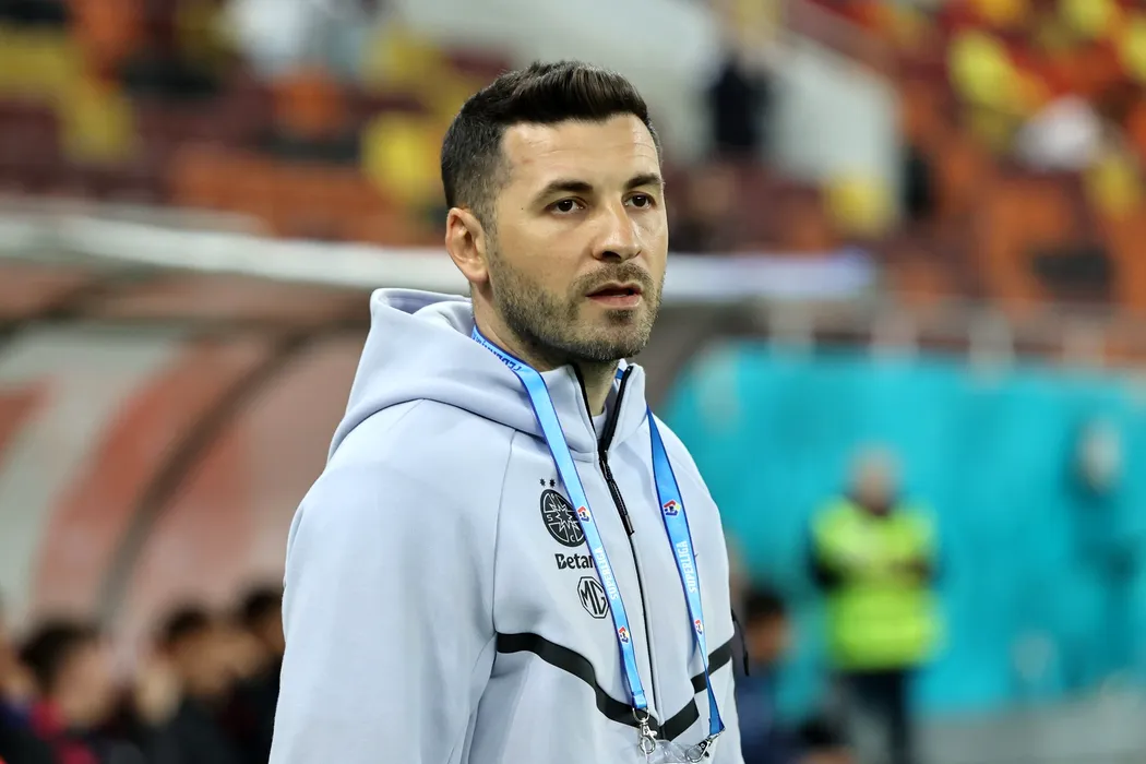 Antrenorul secund Lucian Ionut Filip urmareste meciul de fotbal dintre FCSB si FC Petrolul Ploiesti, din cadrul etapei a 6-a a play-out-ului Superligii, disputat pe Arena Nationala din Bucuresti, vineri, 24 aprilie 2026. GEORGE FLUSTER / MEDIAFAX FOTO